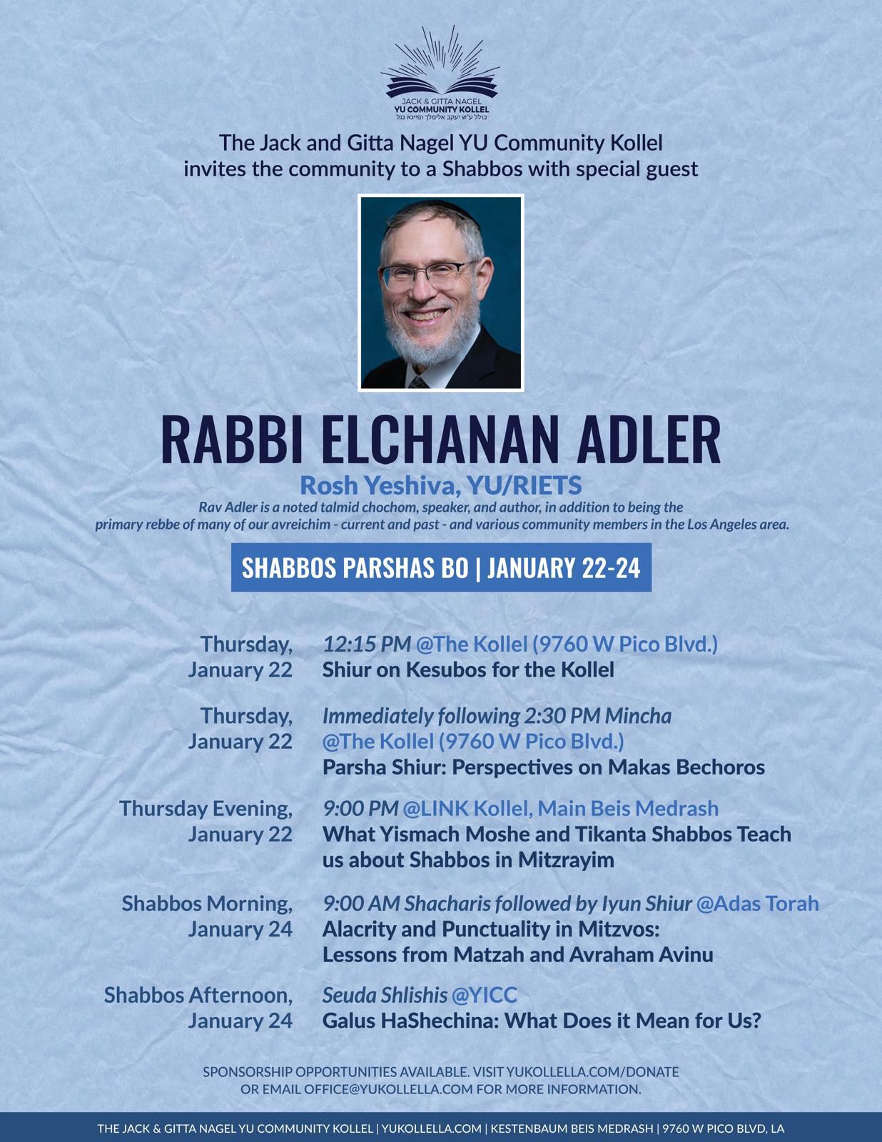 The Kollel’s activities share one focus: to reach, teach, connect with and inspire everyone in our community. Our impact is strongly felt around Pico, enriching the lives of the hundreds who participate. Join us in the wonderful experience of Torah learning with a Shiur that speaks to you.